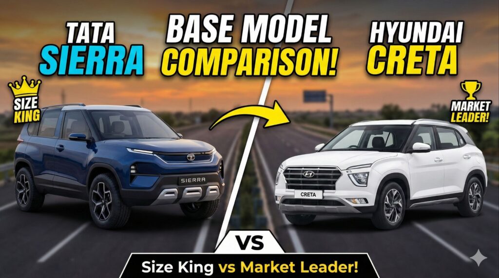 тАЛрдпрд╣рд╛рдБ Tata Sierra рдиреЗ рдмрд╛рдЬреА рдорд╛рд░ рд▓реА рд╣реИред рдЕрдЧрд░ рдЖрдкрдХреЛ рд╕реЬрдХ рдкрд░ “рдмреЬреА рдЧрд╛реЬреА” рд╡рд╛рд▓реА рдлреАрд▓ рдЪрд╛рд╣рд┐рдП, рддреЛ Sierra рдХреЗ рдЖрдЧреЗ Creta рдЫреЛрдЯреА рд▓рдЧрддреА рд╣реИред
